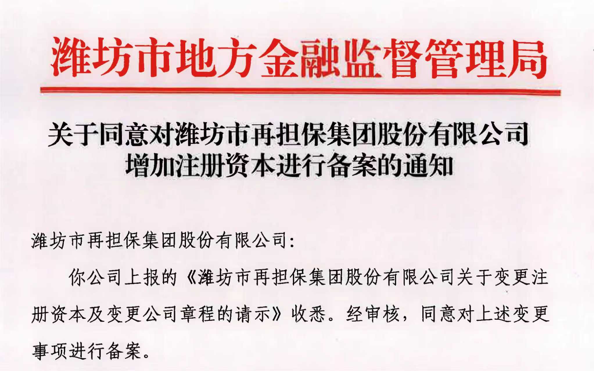 公司名称变更为“潍坊市再担保集团股份有限公司”